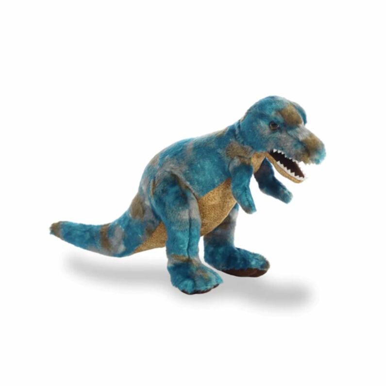 Ce T-Rex est sérieusement câlin avec un extérieur bleu doux et un remplissage de peluche pressable.