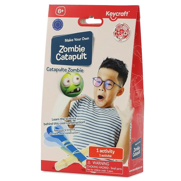 Fabriquez votre propre catapulte à zombies avec cet incroyable kit scientifique. Découvrez la science des catapultes et les lois du mouvement de Newton en créant un mouvement de levier selon différentes trajectoires. Parfaite introduction à l'ingénierie et à la physique, ce jeu inspiré des STIM est une merveilleuse activité permettant de réunir parents et enfants.