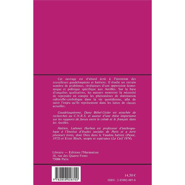 Cet ouvrage est d'abord écrit à l'intention des travailleurs guadeloupéens et haïtiens. Il étudie un certain nombre de problèmes, révélateurs d'une oppression économique et politique spécifique aux Antilles. Sur la base d'enquêtes qualitatives, les auteurs montrent la nécessité de reprendre en compte les phénomènes de domination culturelle-symbolique dans la vie quotidienne, afin de saisir l'enjeu qu'ils représentent dans les luttes de classes actuelles.